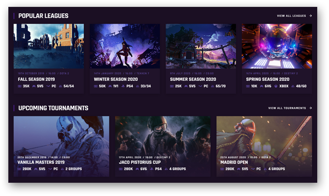 Tournaments, Leagues, Teams
